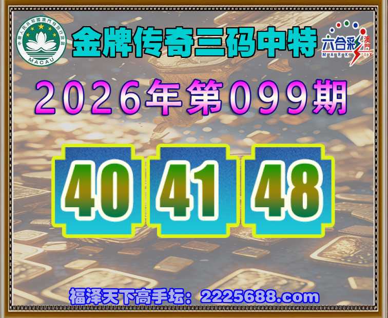 099期: 金牌传奇 🍀三码中特🍀【40.41.48】开:12