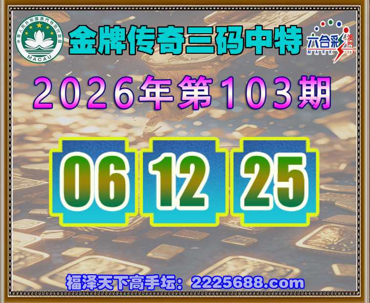 103期: 金牌传奇 🍀三码中特🍀【06.12.25】开:06准上榜资料